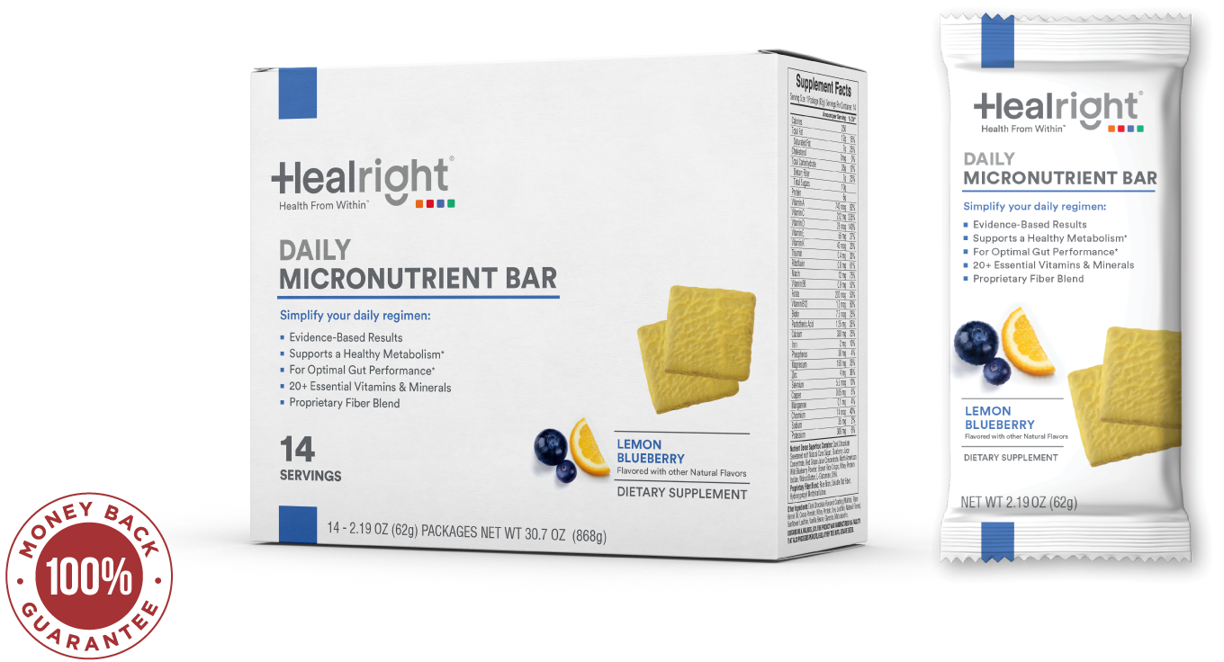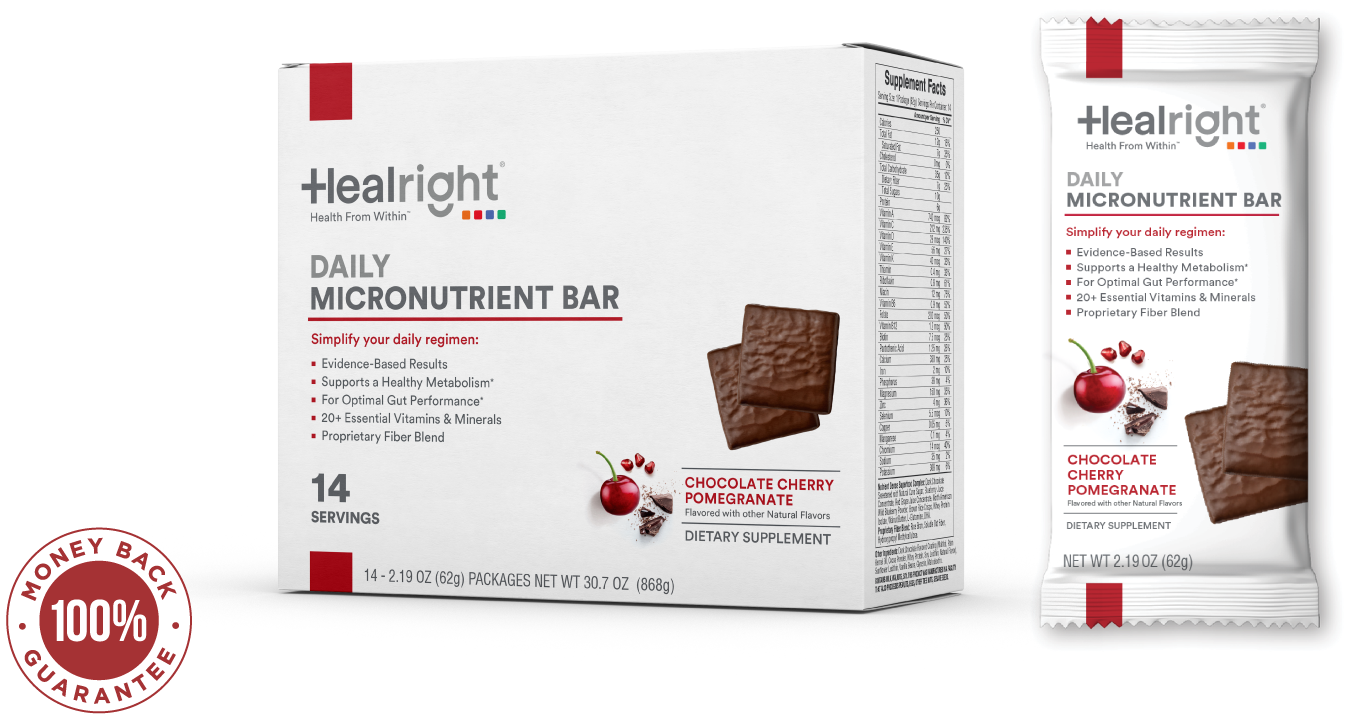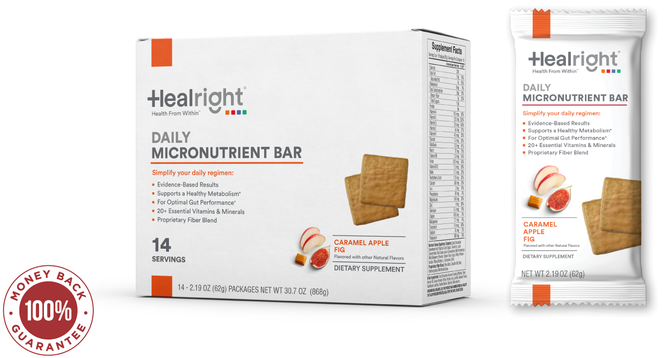 Healright Daily Micronutrient Bars have micronutrients and fiber that fill in the nutrient gaps found in the typical Western diet.